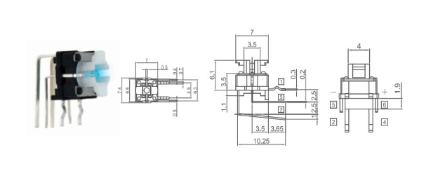 黃色LED帶燈按鍵開關多用于游戲機按鍵上。